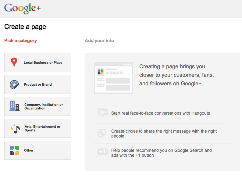 Desde hace poco, Google permite a las empresas realizar su página tipo Facebook para compartir su actividad a través de la nueva red social Google+. Puedes crear Páginas en Google + a través de su página.